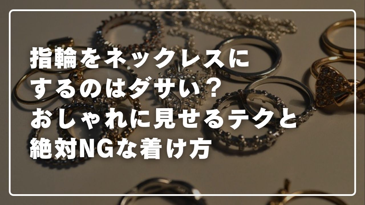 指輪をネックレスとして使うことは、「ダサい」どころか、工夫次第でとても洗練されたファッションになります。とはいえ、無造作にチェーンへ通すだけではチグハグな印象になることも。