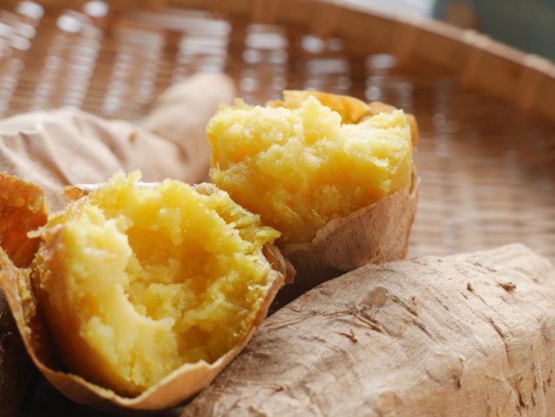 見た目も印象的で、普通のさつまいもとはひと味違うビジュアルは、子どももきっと「これなに?」と興味をそそられるはず。鮮やかな黄色の果肉は、加熱後にさらに黄金色が映えてとてもきれいです。
