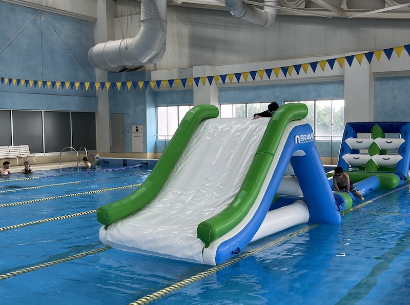 25Mプール、、、泳ぎたい人のためのコース。年配の方も健康のために泳いでいます。水上アスレチックも併設されています。
